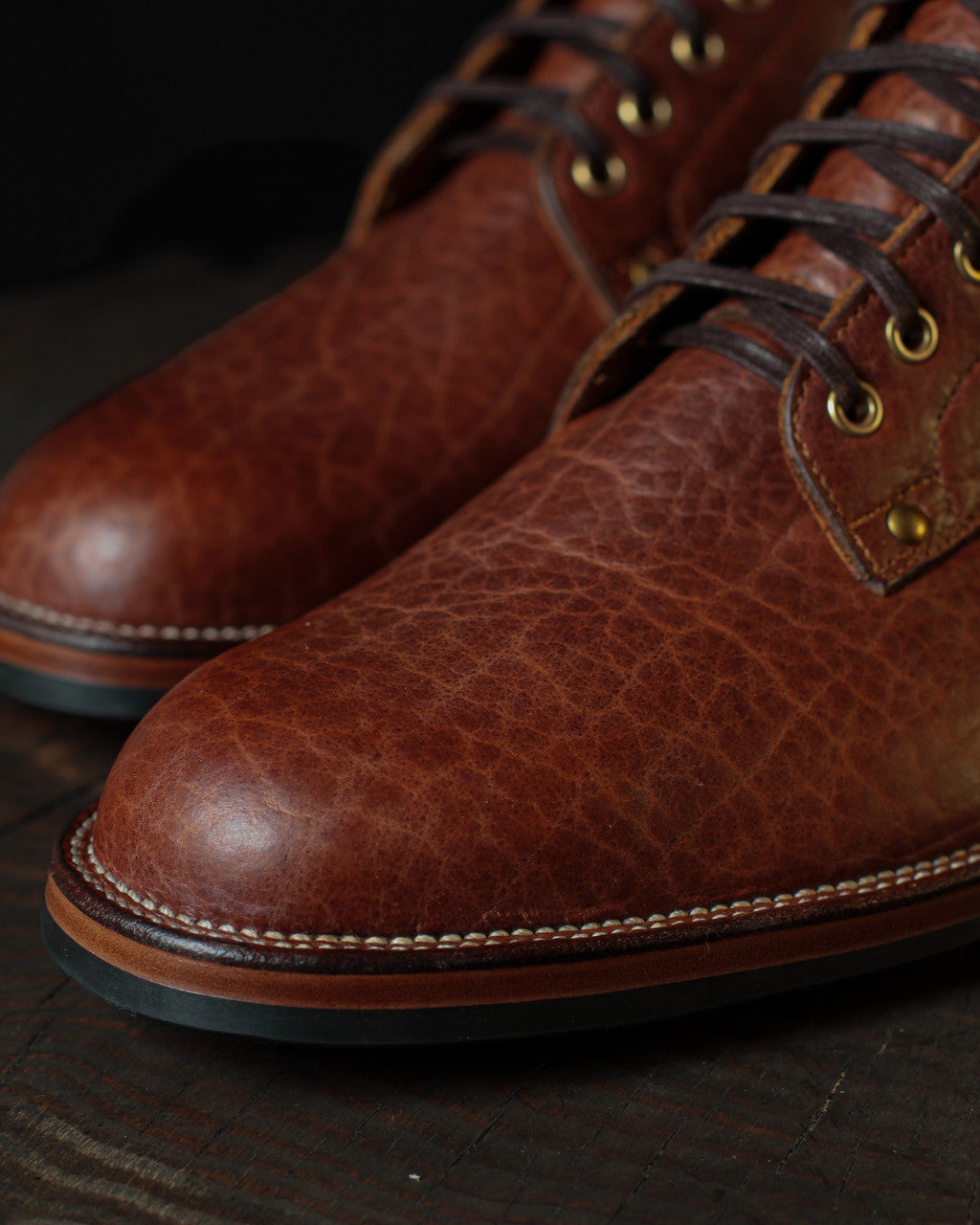 Seidel Tannery, based in the USA, is the proud producer of this exceptional Bison leather. Despite its thickness and strength, this Bison leather is remarkably soft and supple. The natural grain of the Bison hide gives this leather a distinctive character. Each piece tells its own story, marked by the unique patterns and textures inherent to Bison leather. This combination of durability, flexibility and unique aesthetic quality makes it a perfect choice for Østmo X Iron Boots collection.