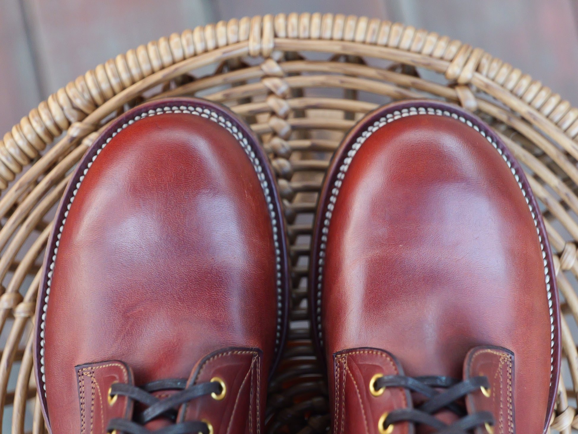2. For hand dyed / hand patinated leather, slight color difference among pairs, or inconsistent coloring (like some parts could be darker and some parts could be lighter) on the same pair could happen. It's the nature of hand dye / hand patina