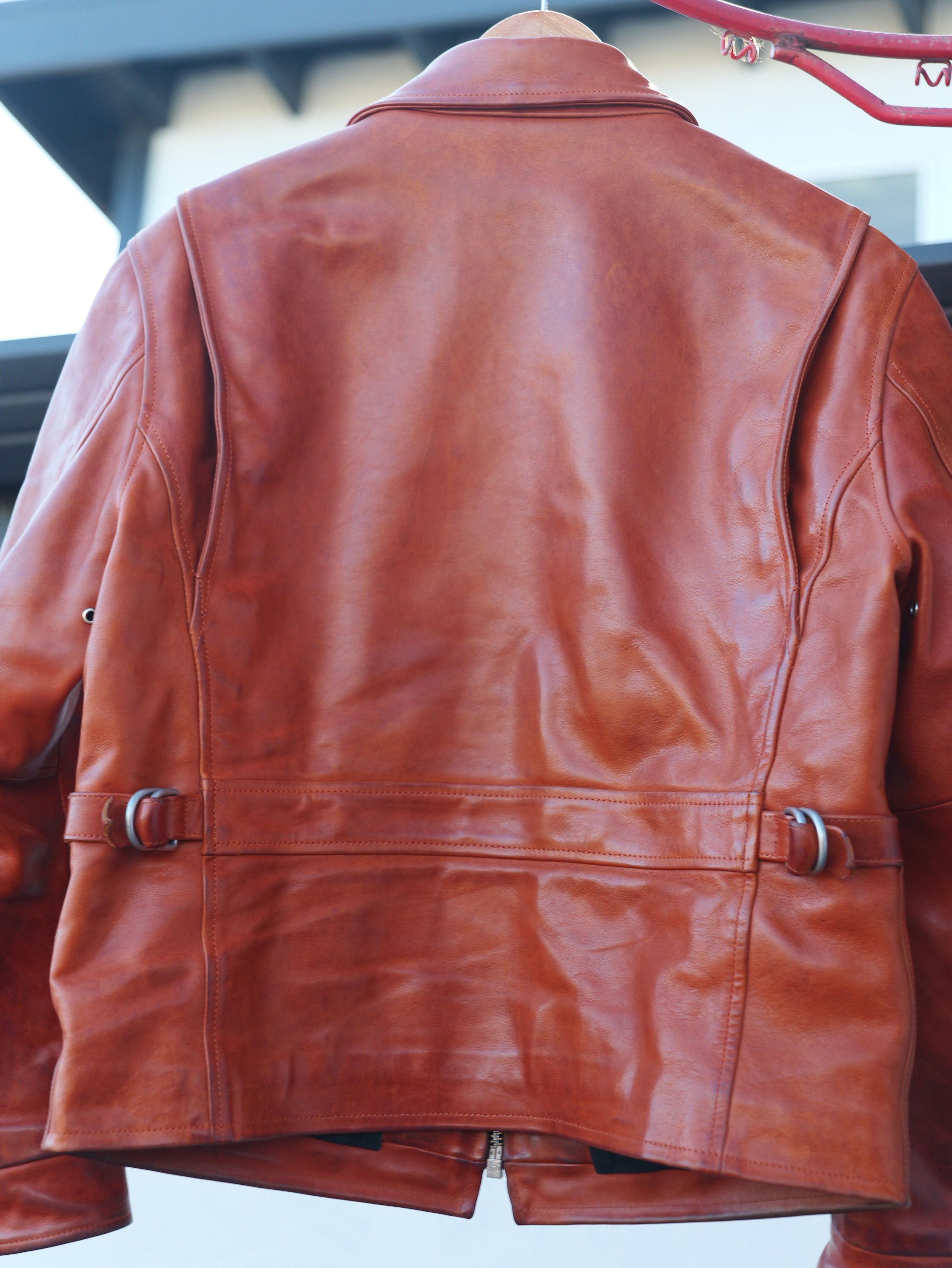 Inspired by the golden era of 1930s–40s leather sportswear, the Escaping Wind jacket references early American straight-zip riding jackets — rebuilt with modern construction, while staying true to the pure functional lines of that period.