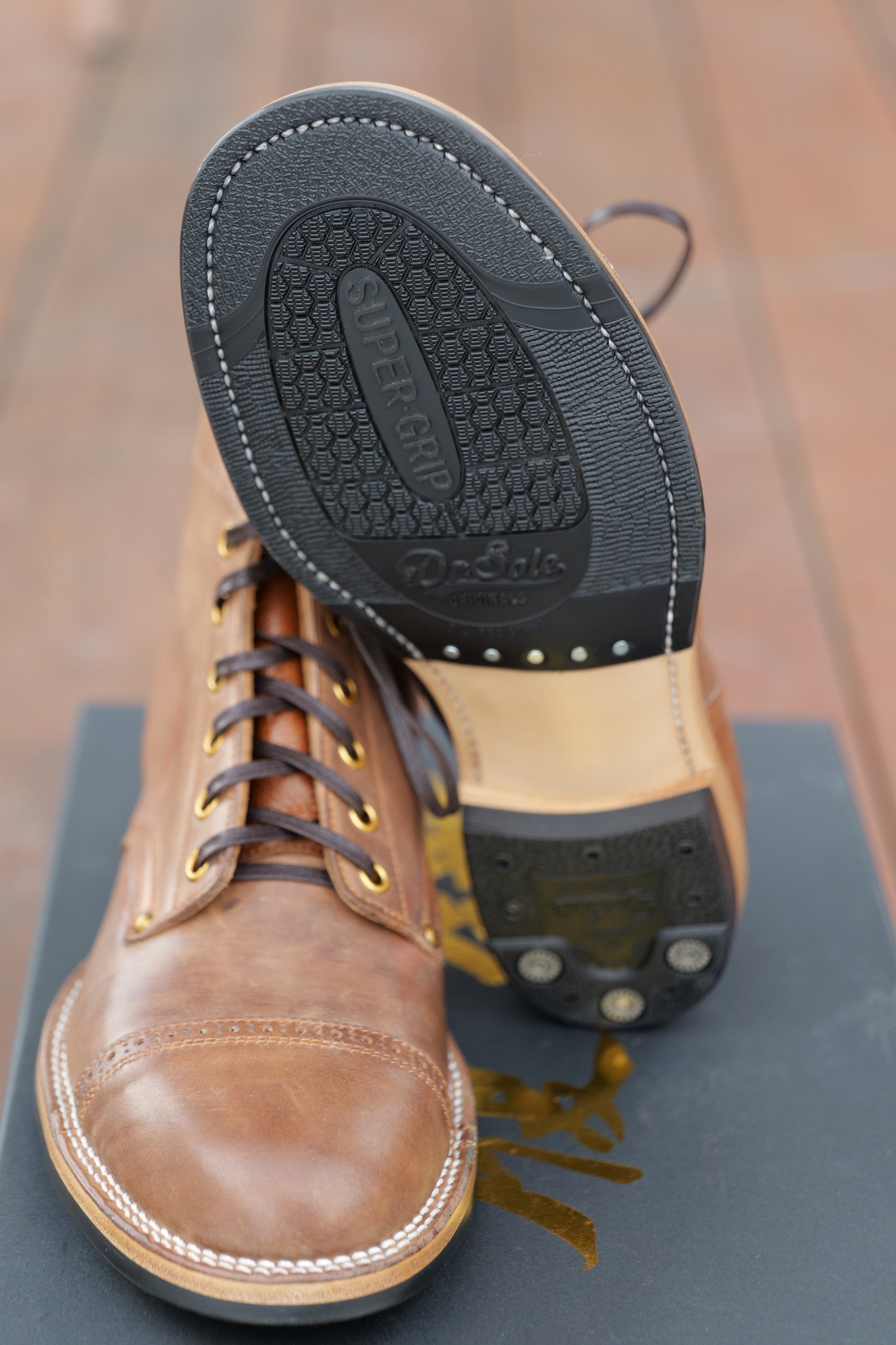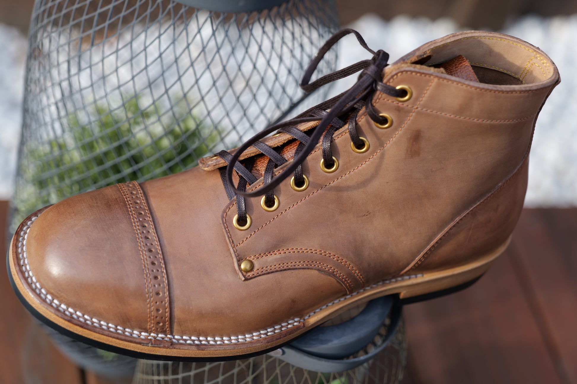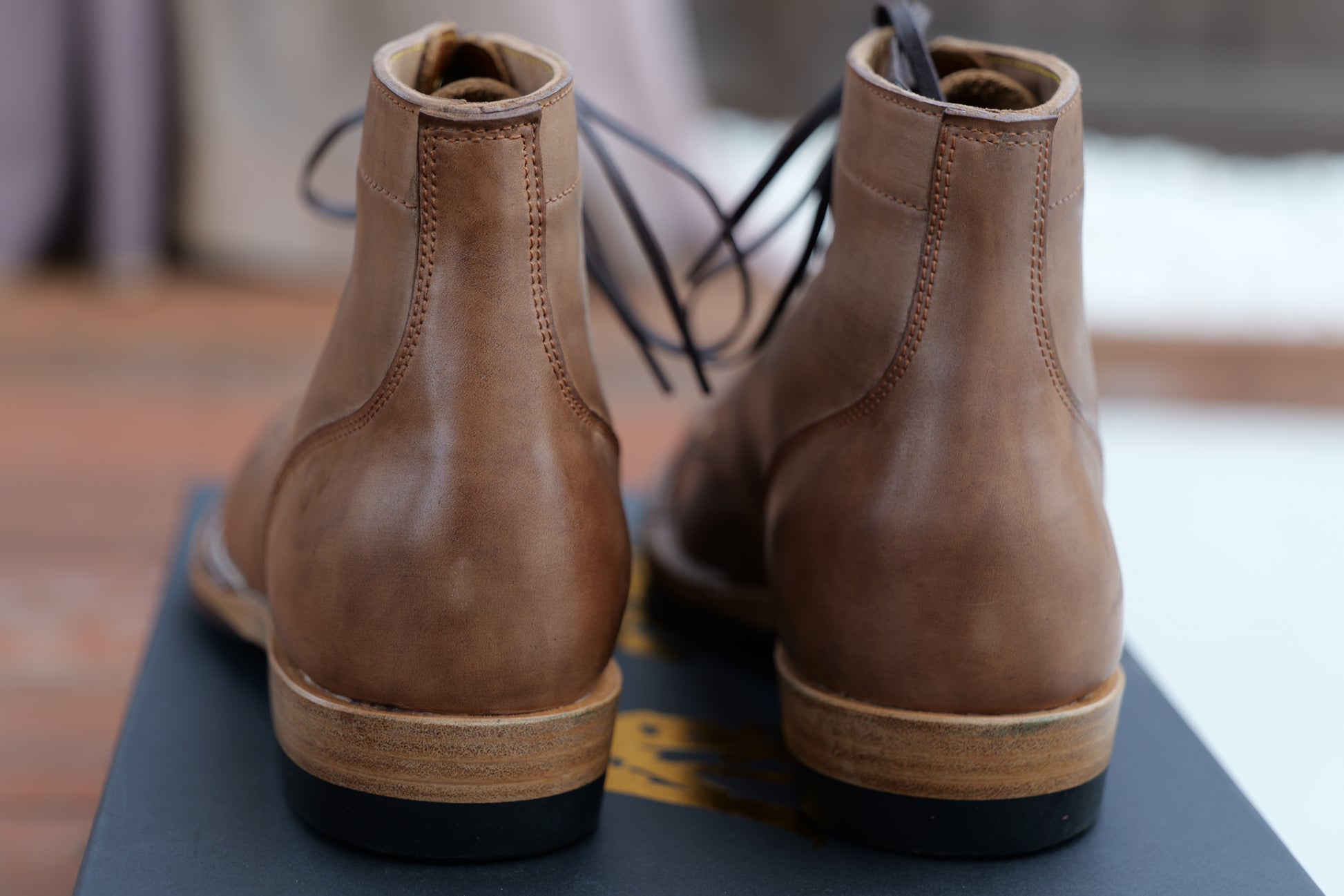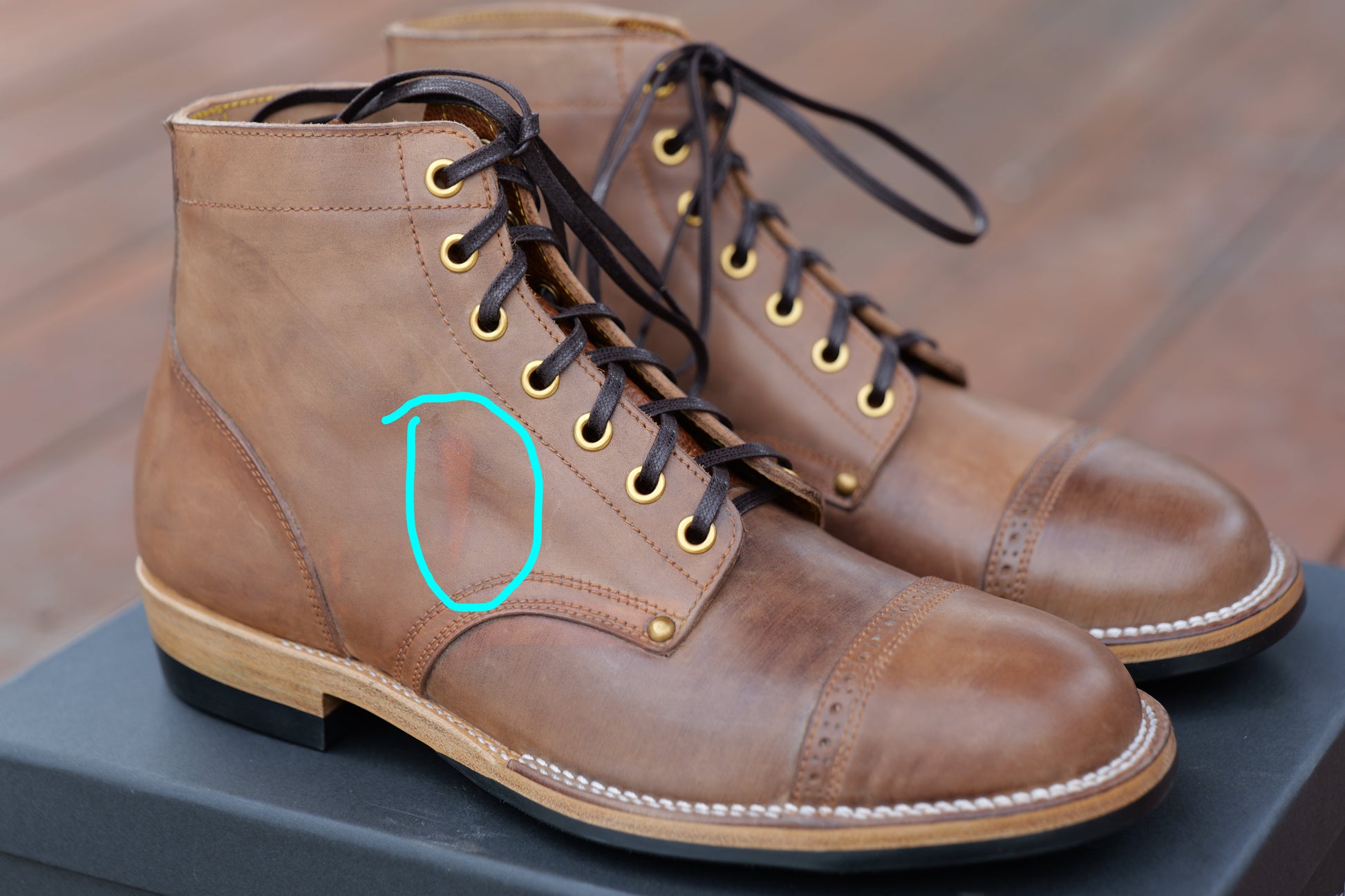 2. For hand dyed / hand patinated leather, slight color difference among pairs, or inconsistent coloring (like some parts could be darker and some parts could be lighter) on the same pair could happen. It's the nature of hand dye / hand patina